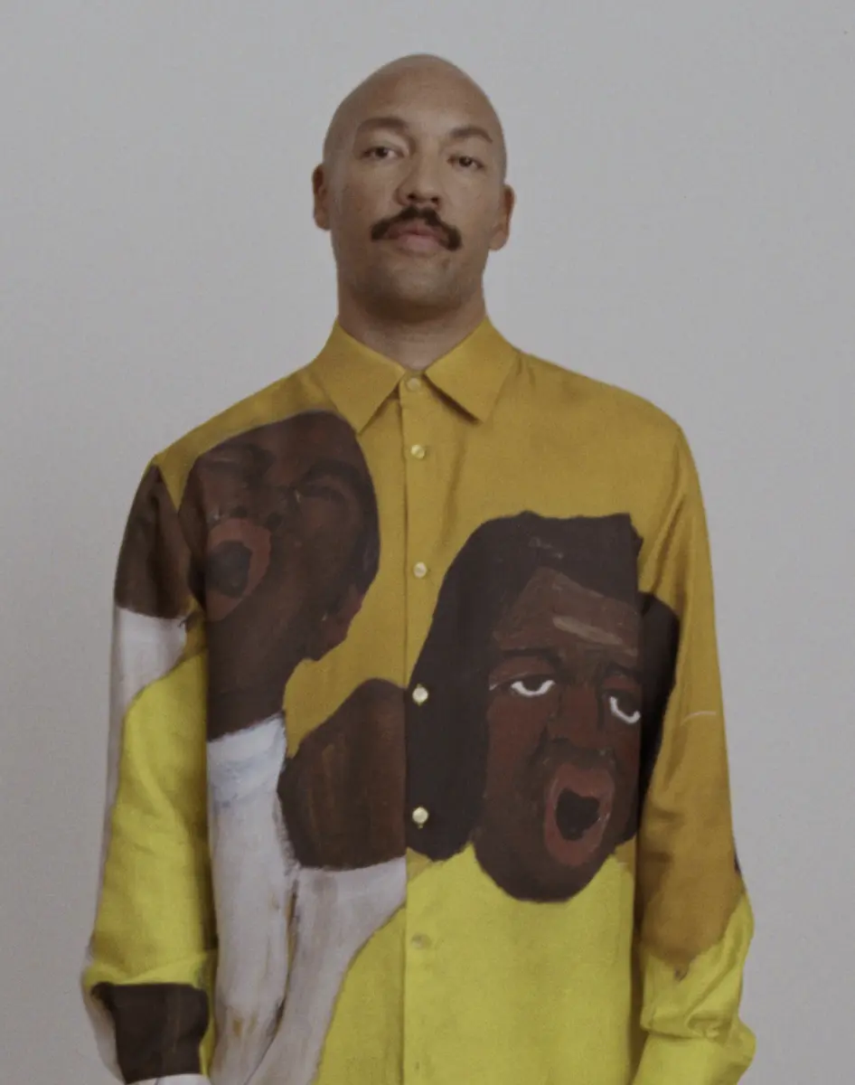 Au cœur de cette collection, les couleurs ocre, jaune, noir et bleu dominent, directement extraites de l’œuvre phare d’Armstrong, The Listening Skies, qui a également inspiré la campagne visuelle. La collection traduit la langue gestuelle de l’artiste en silhouettes sculpturales et interactions texturales affirmées, donnant lieu à des pièces uniques et audacieuses :
